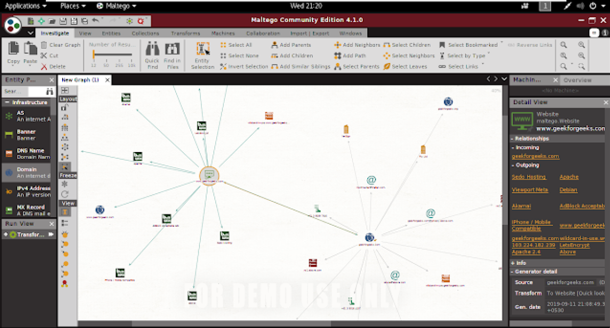 An industry-leading open data analysis solution, Maltego is an open-data visualization and link analysis tool operating at the forefront of the open-source intelligence field. With its intuitive interface and an extensive array of plug-ins, Maltego empowers businesses and governmental bodies from around the globe to achieve their investigation goals.