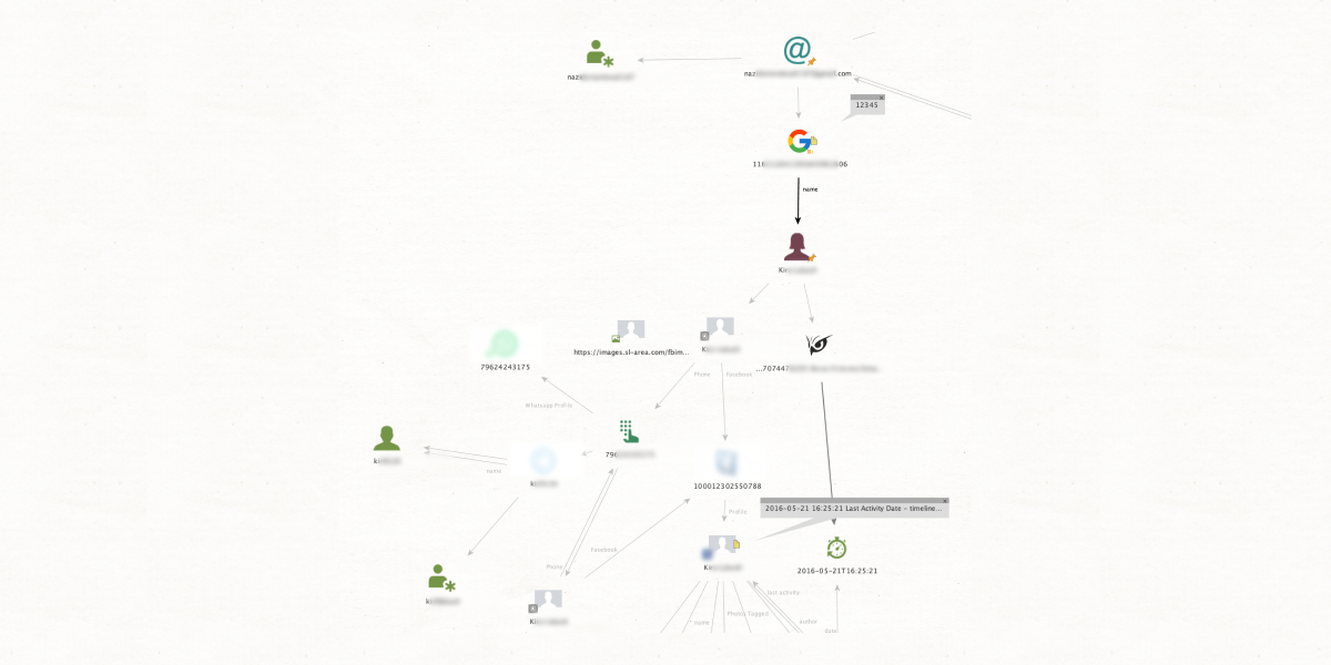 When we start looking into the name, we find a lot of documents from the Dark Web (which we get thanks to the DarkOwl plugin of SL Professional). In these files, we see Kirsten Briar’s activity history on illicit child sexual abuse material forums, along with her phone number, Telegram account with the name Kir, and social media profiles.