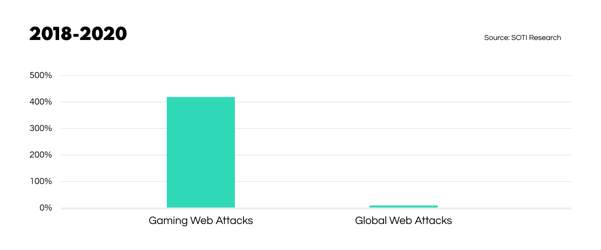A 2020 research paper by content delivery network experts Akamai, highlighted the threats faced by the gaming industry. During the outbreak of the Covid pandemic from 2018 to 2020, web app attacks in the gaming sphere soared to 415%, at a time when global growth of web attacks was down to 2% year-over-year. As a result, gaming saw more growth in attack traffic than any other industry in 2020.