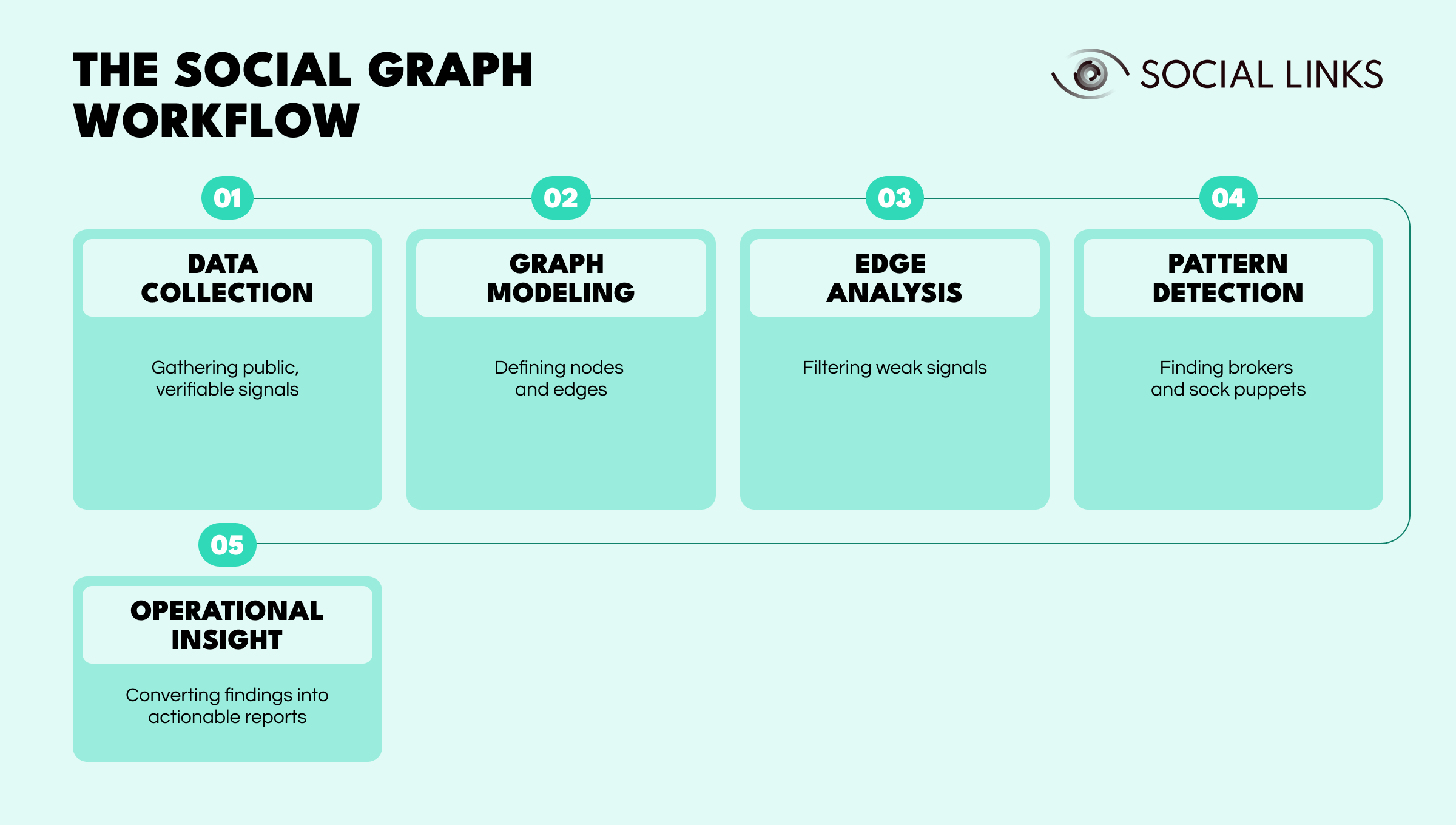 This article explains how social graph analysis transforms digital activity into actionable intelligence. It walks through each stage—data collection, modeling, and analysis—showing how investigators use graph social media methods to uncover hidden connections, identify broker accounts, and expose the networks driving digital influence and disinformation.