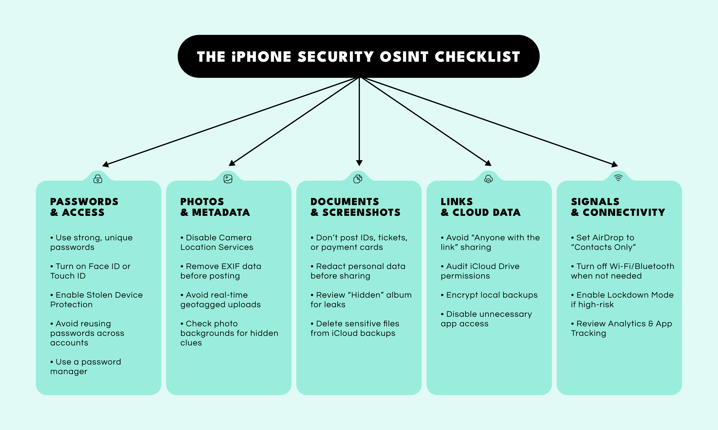When people think about iPhone security, they usually imagine theft—someone grabbing the device off a table or slipping it out of a pocket. But in the world of Open-Source Intelligence (OSINT), the real danger isn’t just losing the phone itself. It’s what can be seen, linked, or inferred from the data inside it. Every message, photo, and login leaves a digital trace that can be collected, cross-referenced, and weaponized.