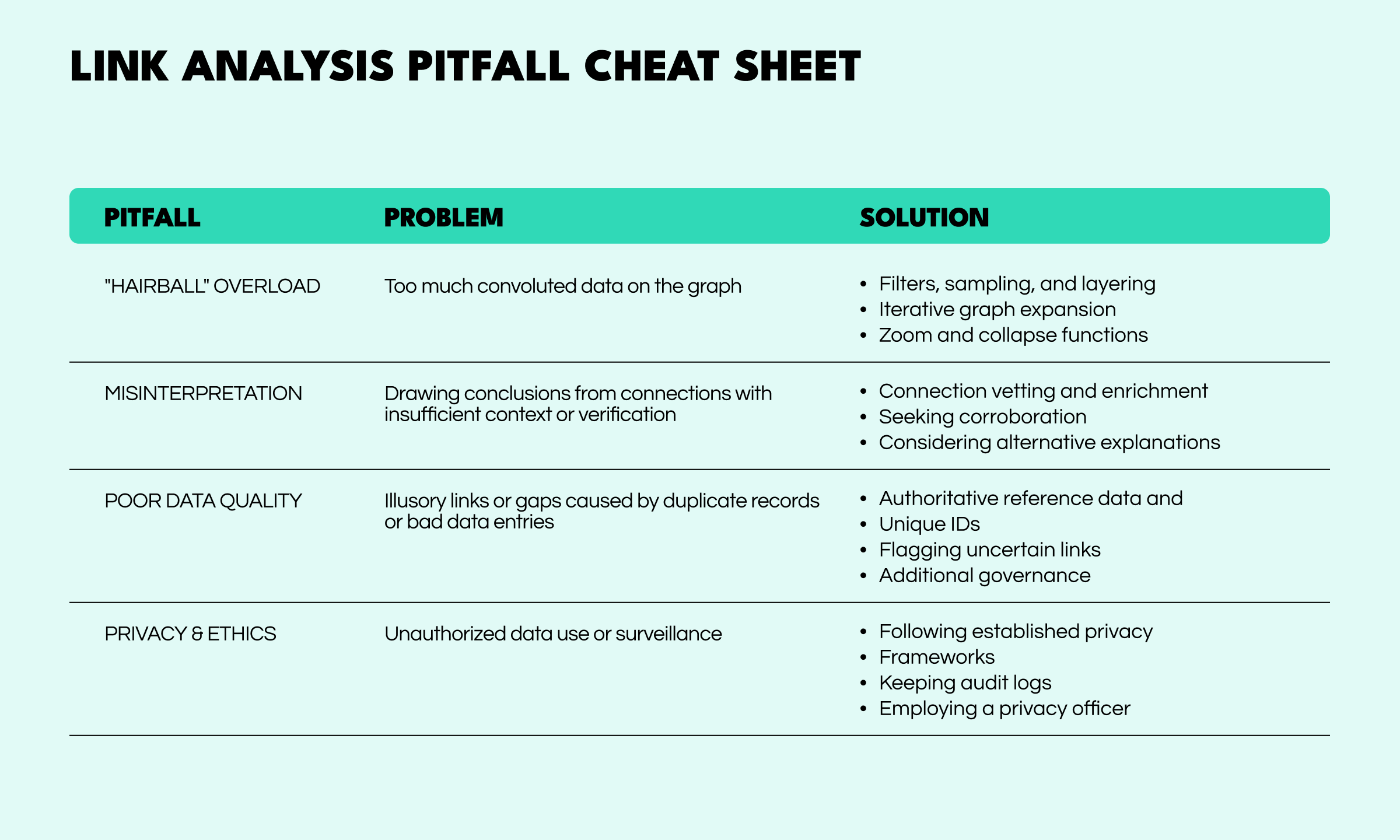 While link analysis is a powerful approach, using it effectively requires care. There are a few common pitfalls that investigators and analysts must watch out for: