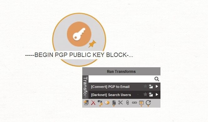 You may ask how? Simple! The PGP key often contains information about the email address that it is attributed to. Can you see where I am leading you in relation to the Dark Net? For this case, in particular, I generated such a key. Upload it to 'Entity: PGP Open Key' and do the magic by 'Transform: [Convert] PGP To Email'.