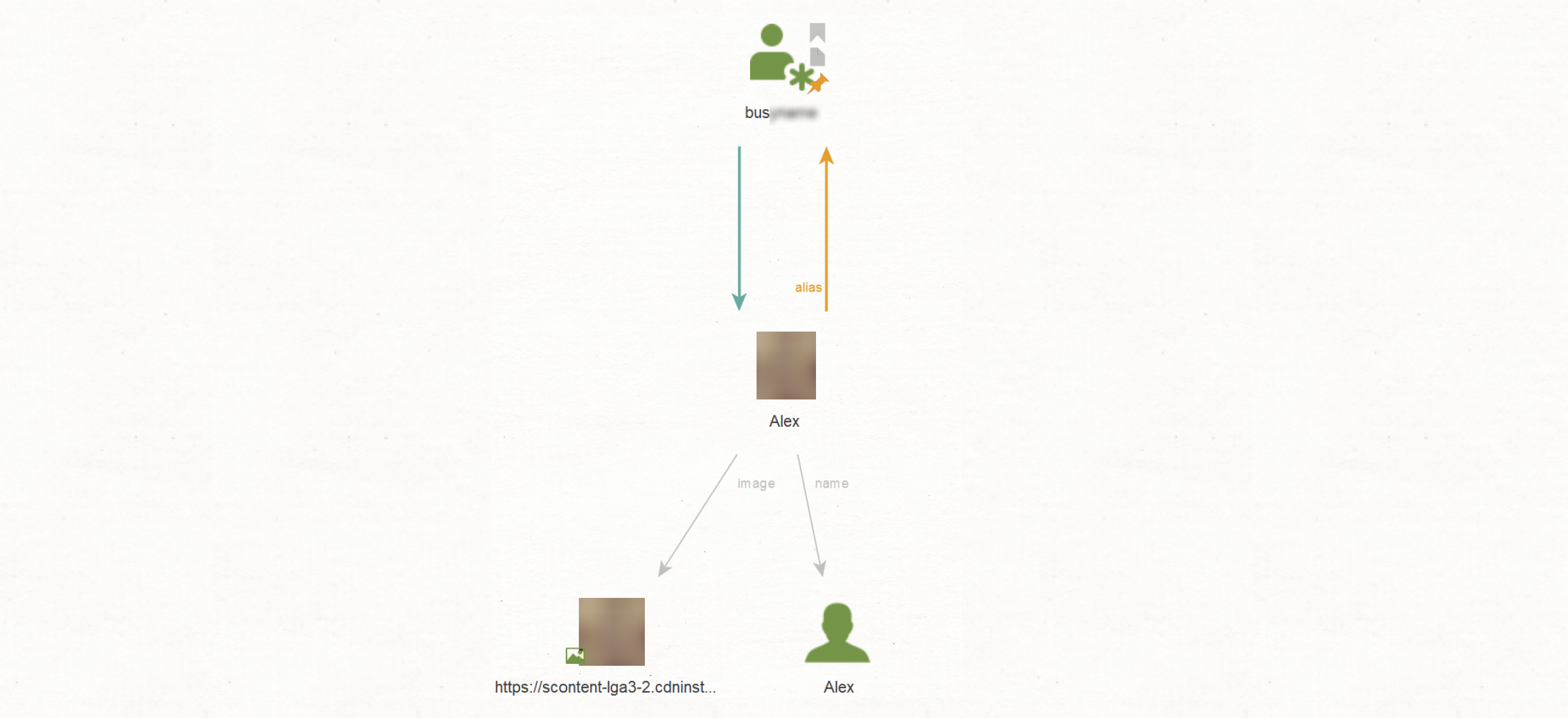 In an alternative approach, we are facing a challenge: we only have our subject's alias and want to gather more information about them. We use the Get Profiles transform to retrieve the associated social media account. Unfortunately, the account is closed, restricting our access. We use the Search by Face and Name transform to gather additional data. Finally, we apply the [LinkedIn] Search by Face and Name transform, which gives us the person’s professional history through their LinkedIn account.