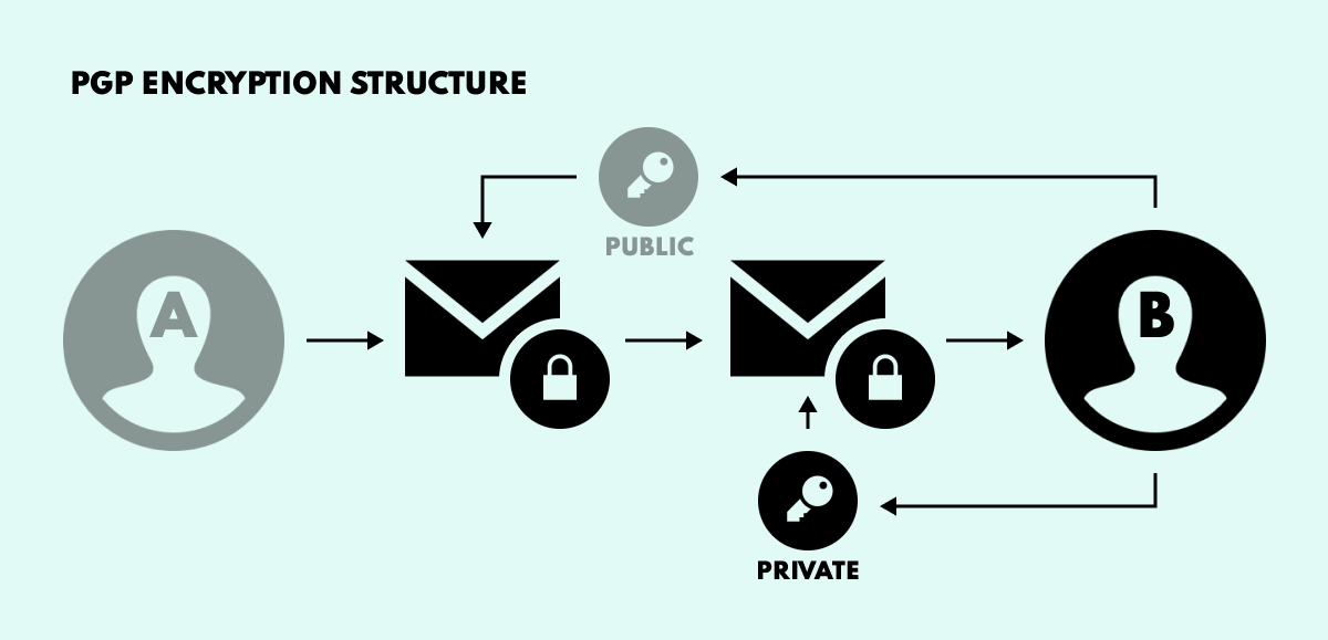 Here’s how it works. Say User A wants to send User B a totally private email. For this purpose, User B needs to create two keys: one public and one private. The public key provides encryption, while the private key is the decryption counterpart. User B then sends the public key to User A for encrypting the message, which is sent to User B and decrypted with the private key.