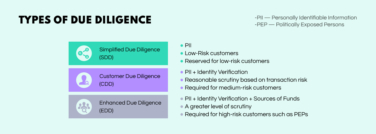 Broadly speaking, we can talk about three distinct types of due diligence: