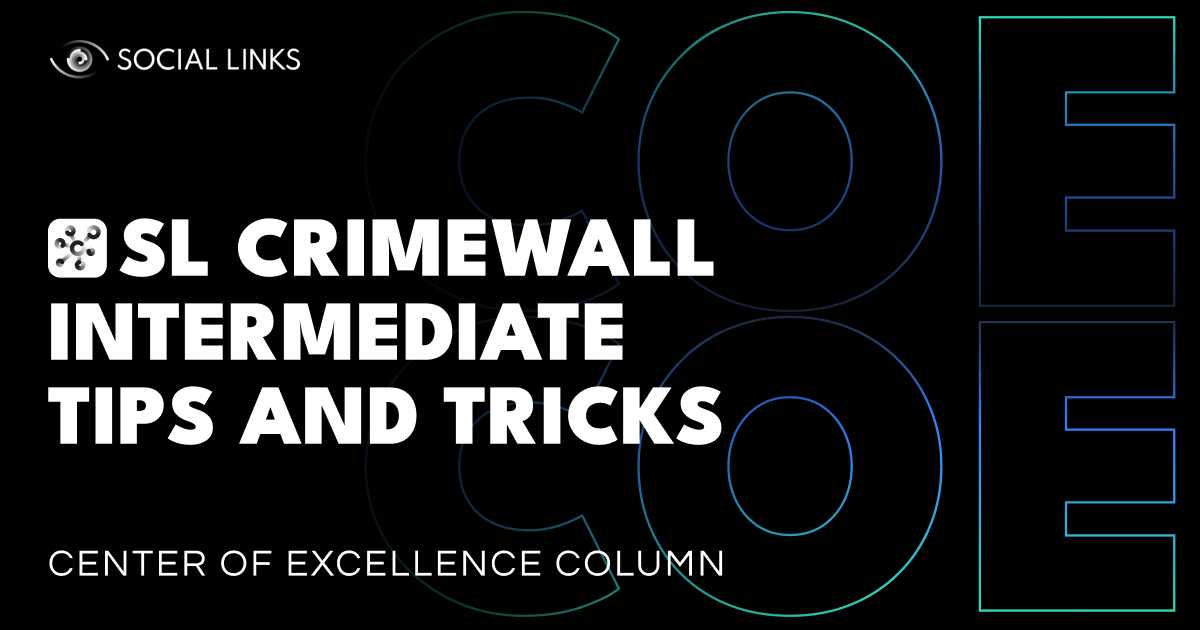 This week, in our Center of Excellence Column, we continue last week’s SL Crimewall beginner article with some more advanced tips and tricks. From merging duplicate information to viewing all the geolocation information on an actual map to starting a search with multiple objects, we showcase some essential time-saving...