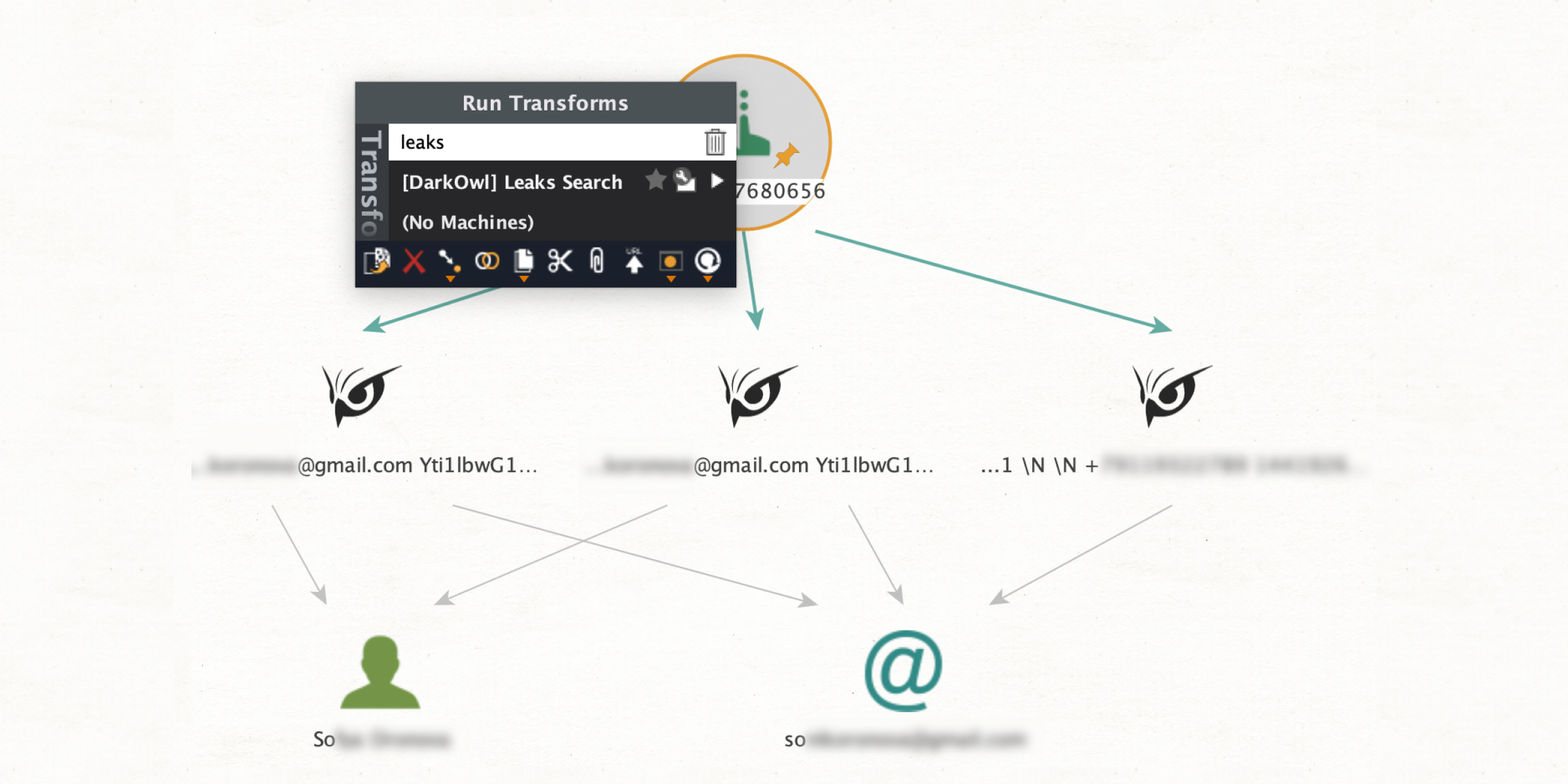 DarkOwl is a great source for checking an organization for data breaches—in particular, it is often an effective way to see if any employee passwords have been leaked. With this aim in mind, we’ve introduced transforms whereby you can search all emails from a domain entity to establish whether it’s been compromised.