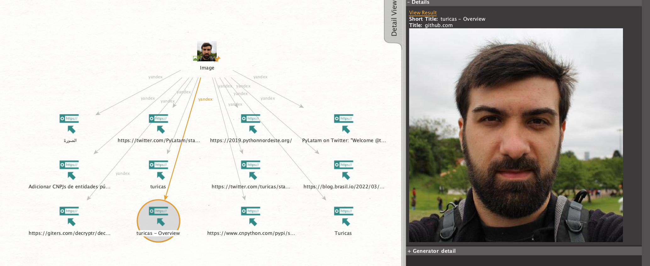 By running [Image] Reverse Search instead, we now get a range of results for that particular image, showing all the online locations where it appears. These could be links, articles, or social media profiles – all giving several opportunities for further expanding the digital footprint. In some cases, it will even return different pictures that match the biometrics.