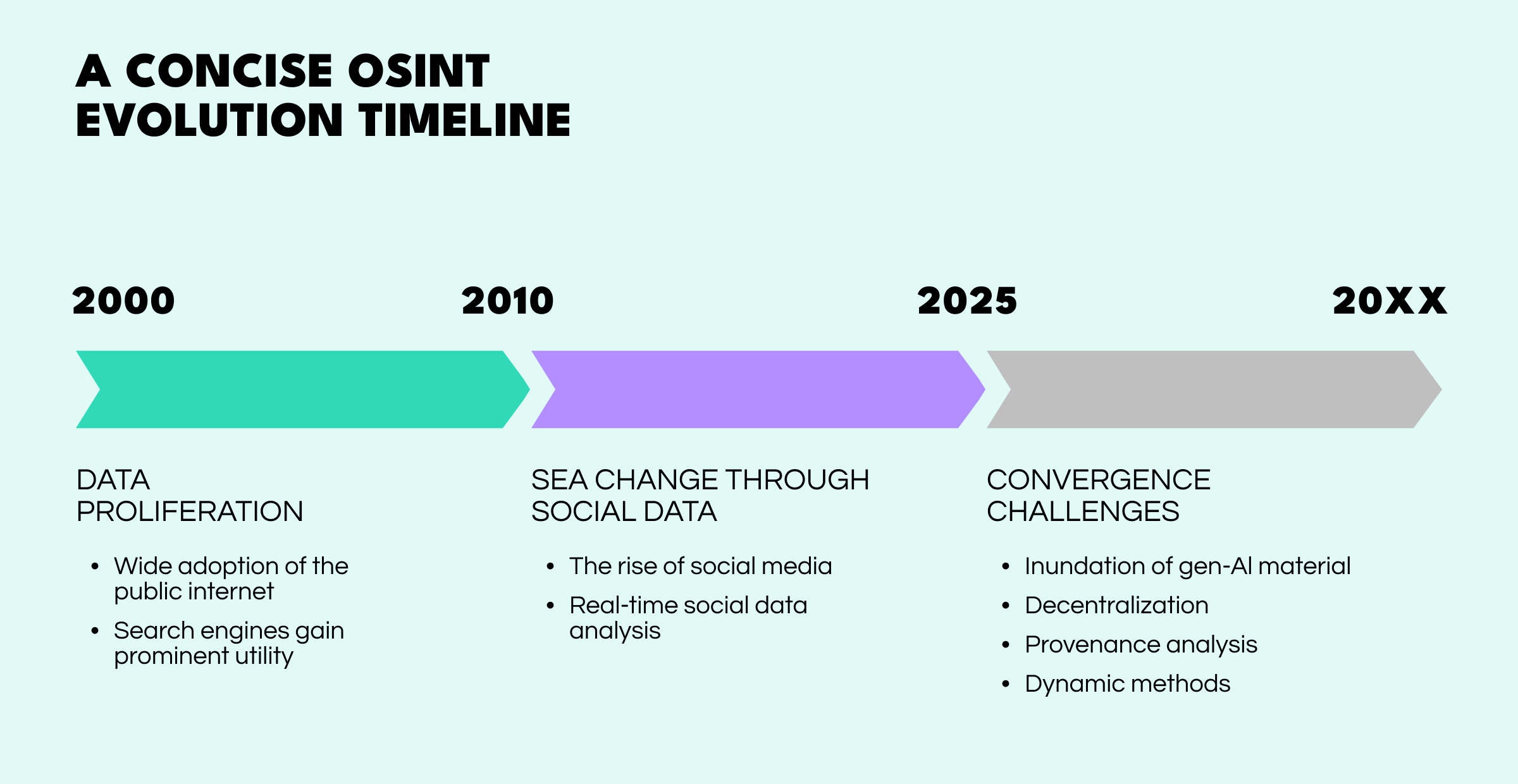 The challenges of the past are now converging with new technologies to create a more complex and dangerous threat environment. To remain effective, OSINT practitioners must contend with three major shifts.