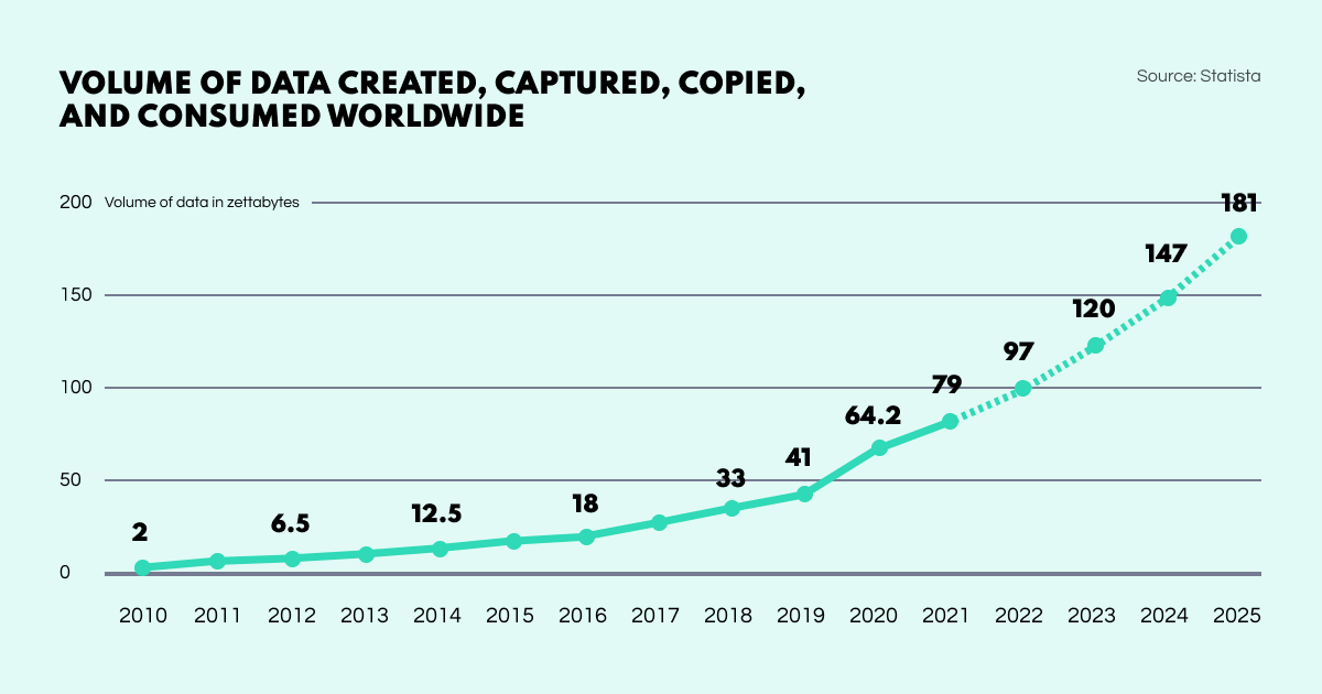 The datasphere volume is set to exceed 180 zettabytes by 2025